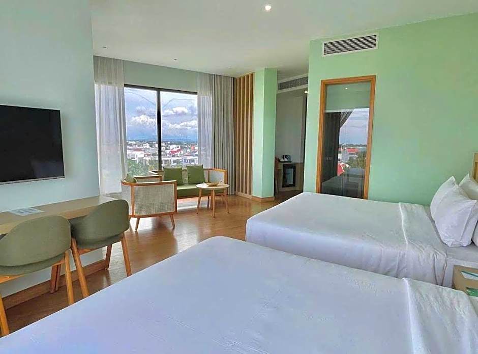 The spacious family room offers air conditioning, soundproof walls, a balcony with city views as well as a private bathroom boasting a walk-in shower. The unit has 2 beds.